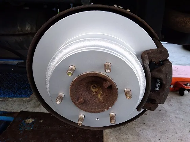 滋賀オートライフハノ いすゞ「ビッグホーン」のブレーキキャリパーオーバーホールとパッド&ローター交換