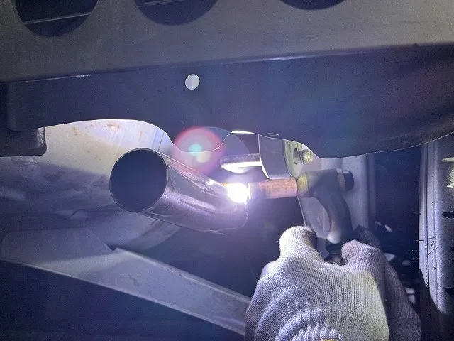 滋賀オートライフハノ スズキ「アルト」のバンパーカットに合わせたマフラーテール溶接加工