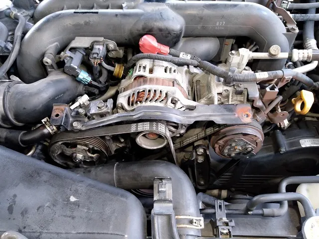 滋賀オートライフハノ レガシィ(BP5)のフロント左ハブベアリング交換&パワステポンプ交換