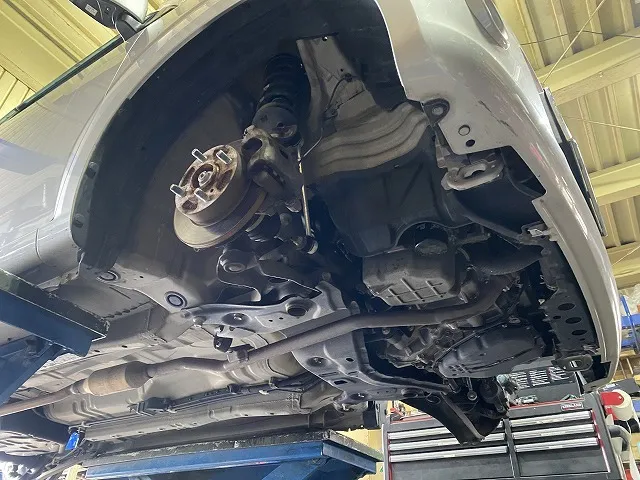 エンジンや下廻りにオイル漏れやブーツ破れがないか点検を行います。