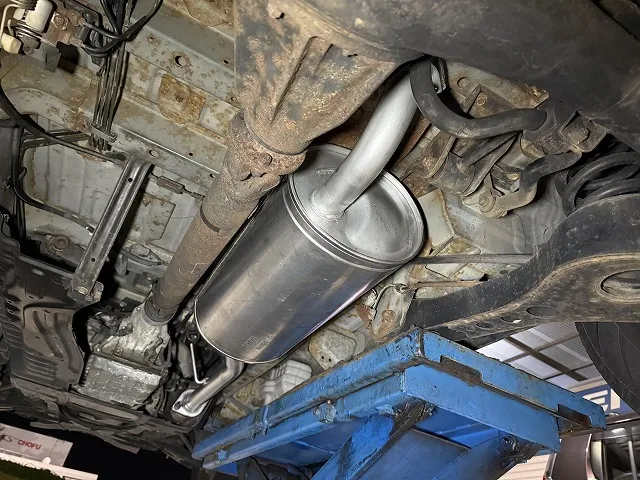 28年前の古いお車でマフラーが錆びて折れて排気漏れしており、