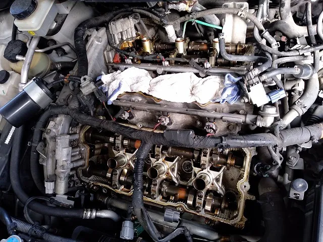 滋賀オートライフハノ 日産「プレサージュ」(PU31)のカムカバーのオイル漏れ修理 ※VQ35エンジン