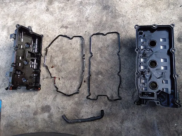 劣化してカチカチになったカムカバーガスケットを新品に交換しました。
