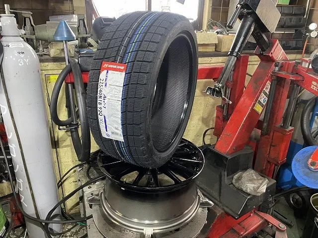 お客様がネットでご購入された「ナンカン」のスタッドレスタイヤ4本をお持ち込みされました。