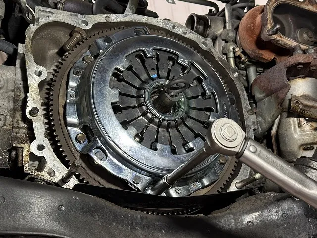 クラッチのセンター出しをしてクラッチカバーを規定トルクでキッチリ締め付け。