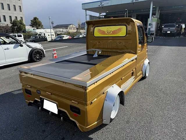こちらのお車は当店で数年前にオーバーフェンダーで軽自動車から1ナンバーの「普通貨物」に構造変更させて頂いた軽トラックです。