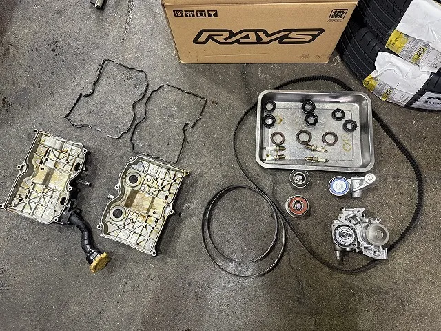 今回、カムカバーガスケットとプラグも新品交換。