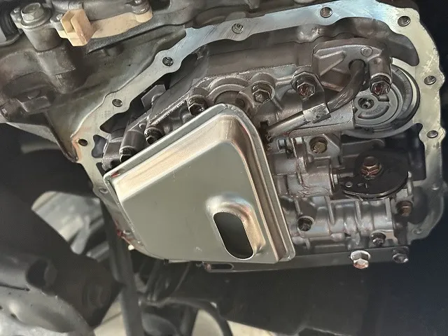 ストレーナーの交換もご依頼を頂きましたので、まずはATオイルパンを取り外す作業から。