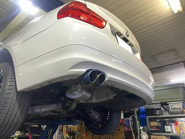 滋賀オートライフハノ 輸入車「BMW 320i」(E90)の持込マフラー溶接取付