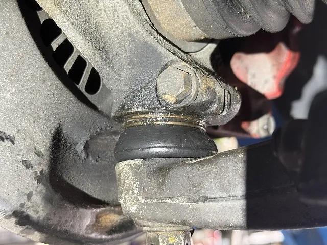 フロント右ロアアームブーツからグリスが漏れていたので新品ブーツに交換しました。
