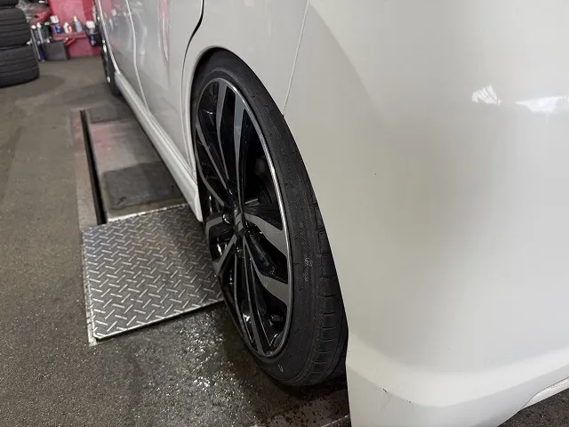 滋賀オートライフハノ スズキ「ワゴンR スティングレー」(MH23S)の持ち込みキャンバーアクスル交換 ※キャンバー2°