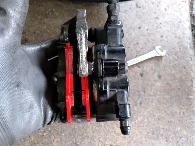 プロアームのパッド交換はキャリパーを取り外して行います。