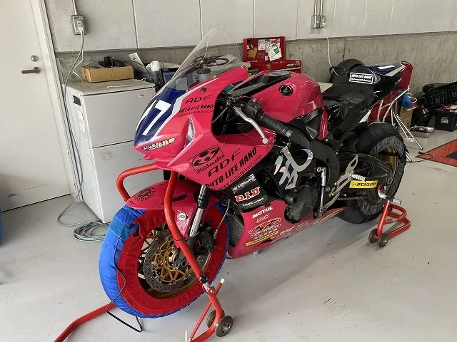 特スポ走行後は「予選&決勝」に向けてダンロップサービスにて新品スリックに交換。